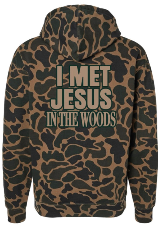 “I Met Jesus in the Woods” duck camo hoodie